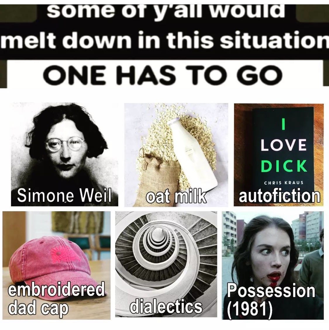 This started when I was sent what felt like a hyper specific meme (pictured below) and had to contend with the fact that thousands of people (at least) in the world could relate to this meme that felt like it was made by a close friend about me, and the idea that I’m not unique or special suddenly felt like a beautiful gift. I think part of growing up that I’m really enjoying is letting go of my need to be an individual, and instead embracing the way I’m shaped by everything and everyone around me. I’m a collage, and that’s lovely. I want to gracefully and gratefully let what I love change me.
